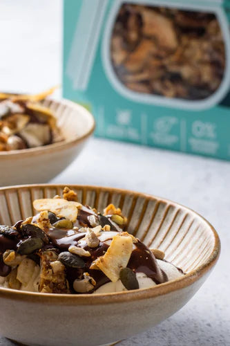 Découvrez notre gamme de granolas sains et biologiques : Disponible dans de délicieuses variétés à base d'avoine et sans céréales. Chaque mélange est cuit au four à la perfection, riche en fibres, sans sucre raffiné et fabriqué à partir d'ingrédients biologiques soigneusement sélectionnés.